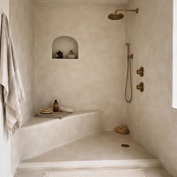 Tadelakt is a centuries-old lime plaster finish, hand-applied and stone-burnished to create a seamless, waterproof surface with soft movement and natural depth.